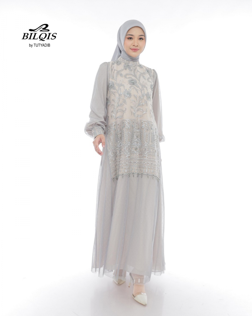 Dirancang dengan detail halus dan warna yang menenangkan,dress ini menjadi simbol keanggunan perempuan di Hari Raya.